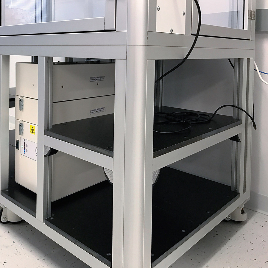 - Deck work surface and custom shelving using ¾" black TRESPA©