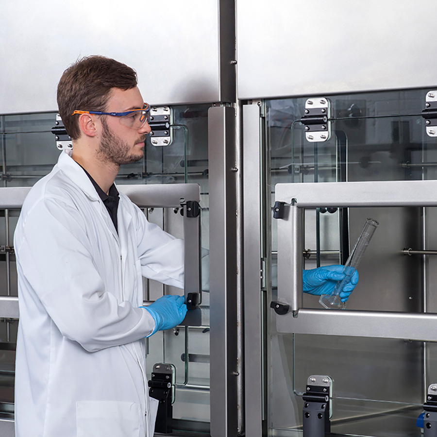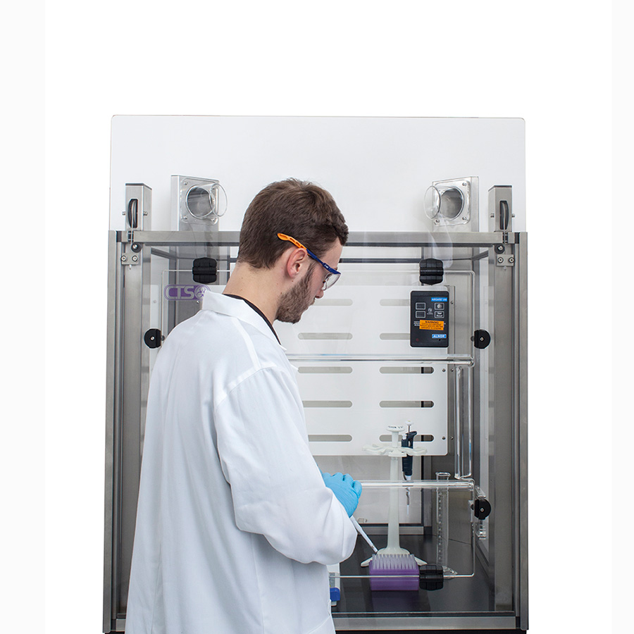 The HiPo LEVTM range of enclosures use a unique CAV (Constant Air Volume) sliding sash mechanism that allows the operator to have variable height access to equipment and processes. This system requires a much lower airflow than a standard fume hood, which saves significantly on energy costs.