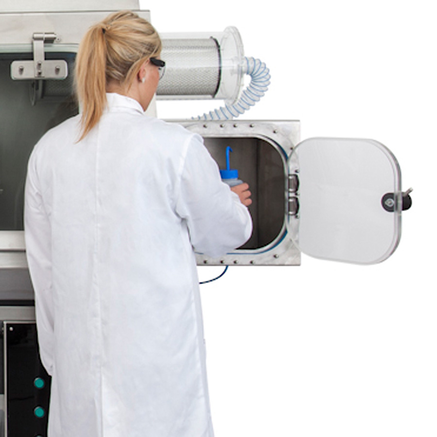 Constructed in Stainless Steel with a hinged glass door for easy access, automatic pressure control with ramp up facility and interlocking transfer hatch. The CTS Powder Handling Isolator provides <5ng/m3 for handling of potent drug compounds.